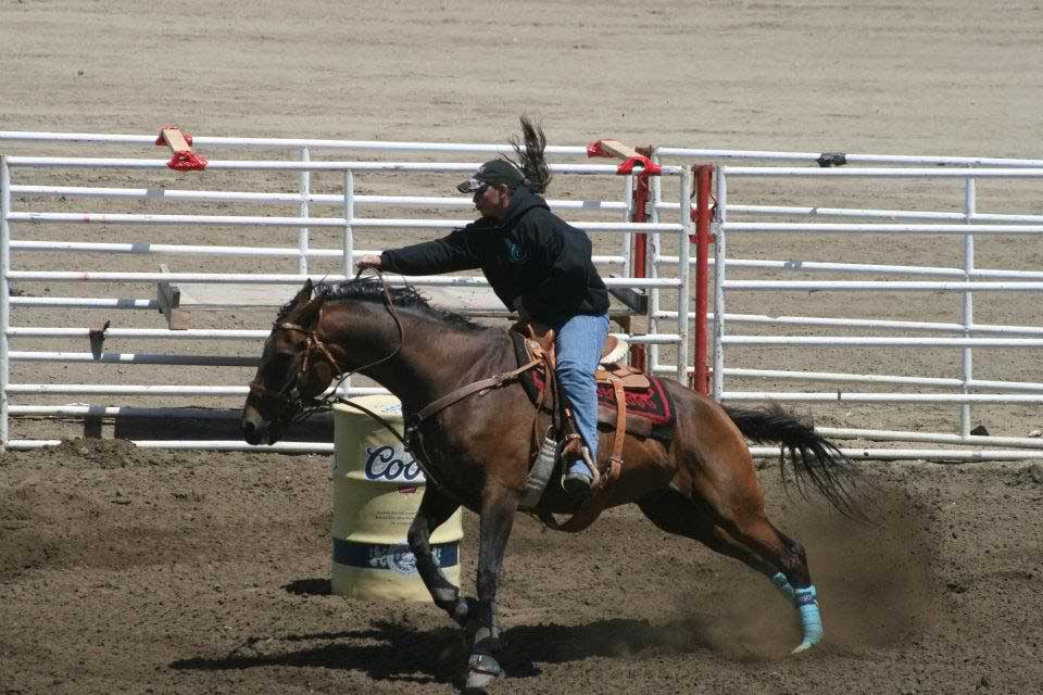 I really didn’t have an answer to his questions, so I rode a lot of horses and studied a lot about myself. After about a year I figured out what kind of horse fit me. I went to the Melby house to ride one day and saw their daughter riding this stunningly beautiful dark bay horse that they had just purchased for her to run barrels on. I went out to the arena to watch her make a run on him and my heart melted. This was the horse I had been dreaming of. The family told me for months they wouldn’t sell him. One day out of the blue I got a phone call to come try the horse out. The family needed to liquidate some horses since their mother was on the road to the NFR.