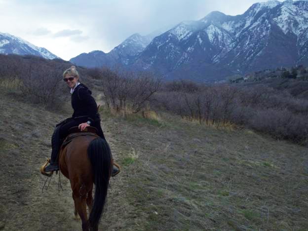 “It started when my horse and I went to a clinic 8 hrs away. My horse had never traveled without one of his herd mates before. By the time we had completed the clinic and had returned home, something was wrong with my horse. Several months later, the vet said “ulcers”. He put him on a course of ulcer medication mixed with pain killers. Right when he said the medications would take effect, my horse became his old self again. Unfortunately, 2-3 weeks after I discounted the medication, he went back to all of his symptoms. Jo and a happier Marquis on the trails in Salt Lake City, UT. The vet put him on another medication, and again he improved greatly. Again 2-3 weeks after discontinuation, his symptoms returned.